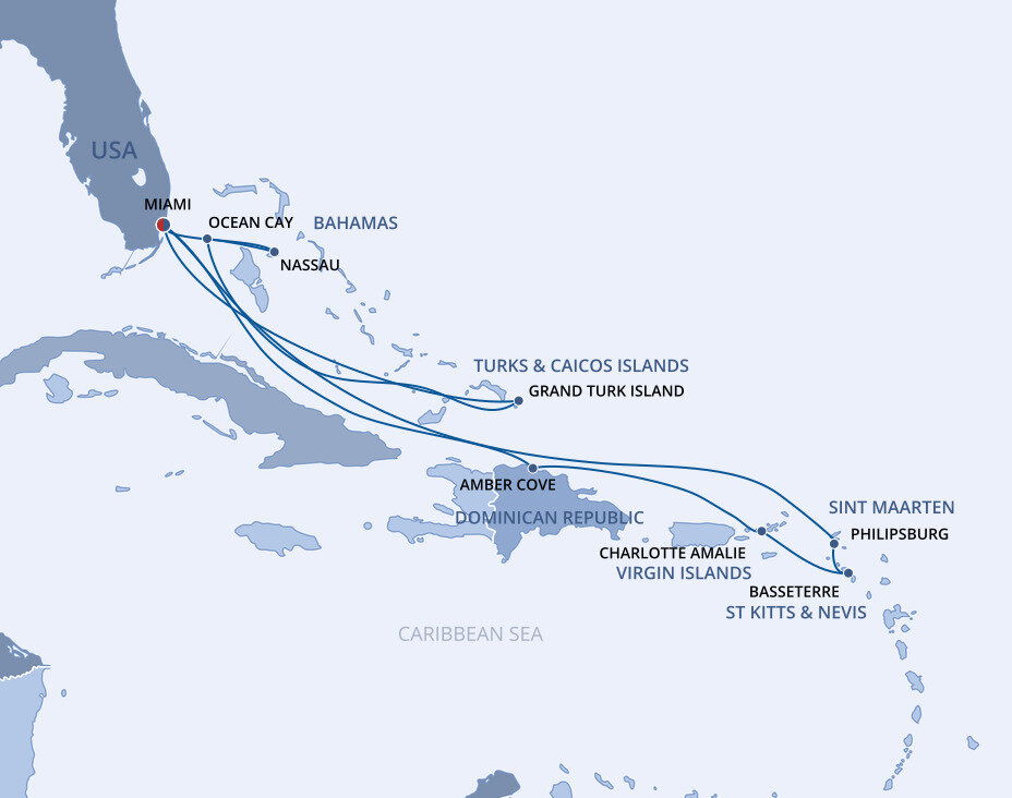 This multicultural city where the sun rules supreme is more than just a cruise port. Visitors from all over the world enjoy Miami’s famous Art Deco buildings, family-friendly zoos and romantic palm tree-lined streets filled with fantastic restaurants. Don’t forget about the white sandy beaches and year-round warm weather, perfect for relaxing before or after your Caribbean cruise from Miami.