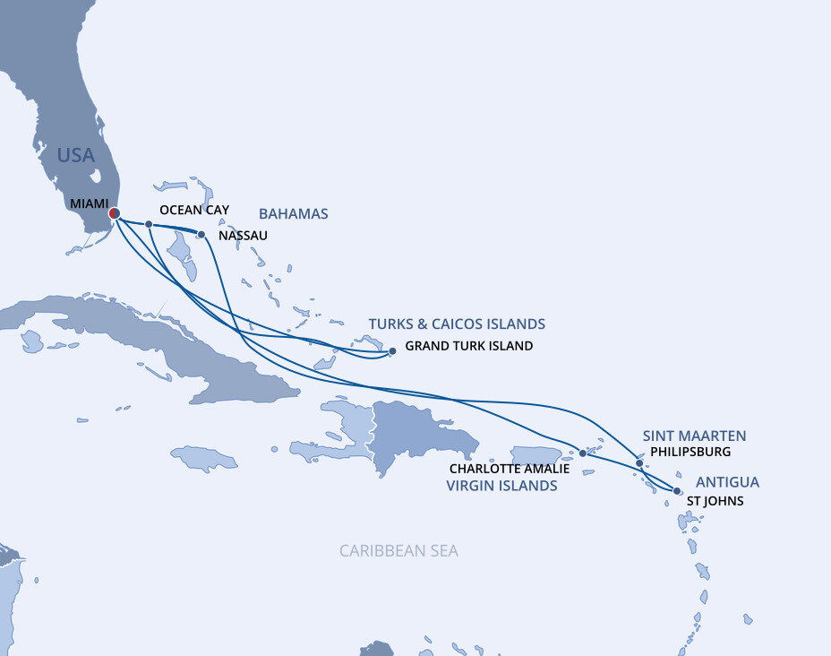 This multicultural city where the sun rules supreme is more than just a cruise port. Visitors from all over the world enjoy Miami’s famous Art Deco buildings, family-friendly zoos and romantic palm tree-lined streets filled with fantastic restaurants. Don’t forget about the white sandy beaches and year-round warm weather, perfect for relaxing before or after your Caribbean cruise from Miami.