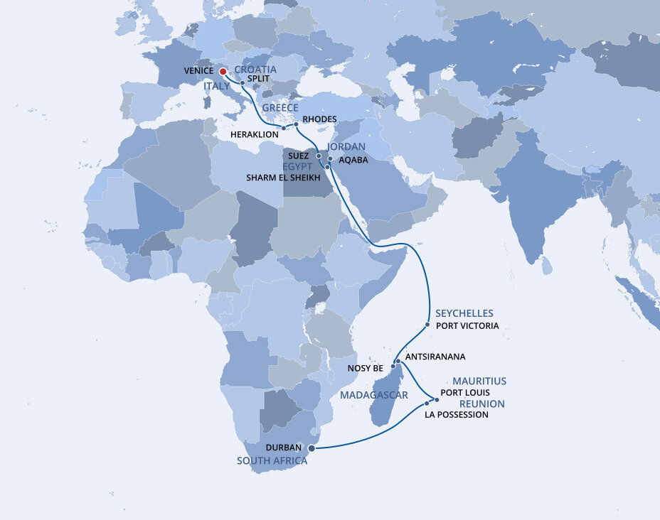 Enjoy the breathtaking illusion of sailing through oceans of desert sand as you cruise the Suez Canal, the engineering marvel that connects the Mediterranean and Red Seas.