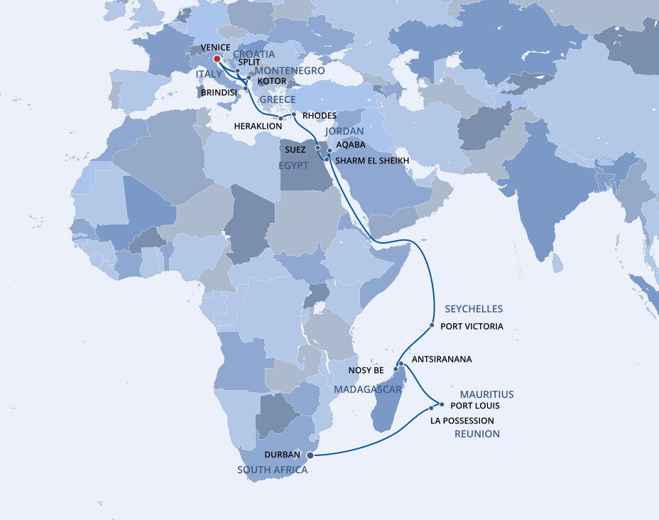Enjoy the breathtaking illusion of sailing through oceans of desert sand as you cruise the Suez Canal, the engineering marvel that connects the Mediterranean and Red Seas.