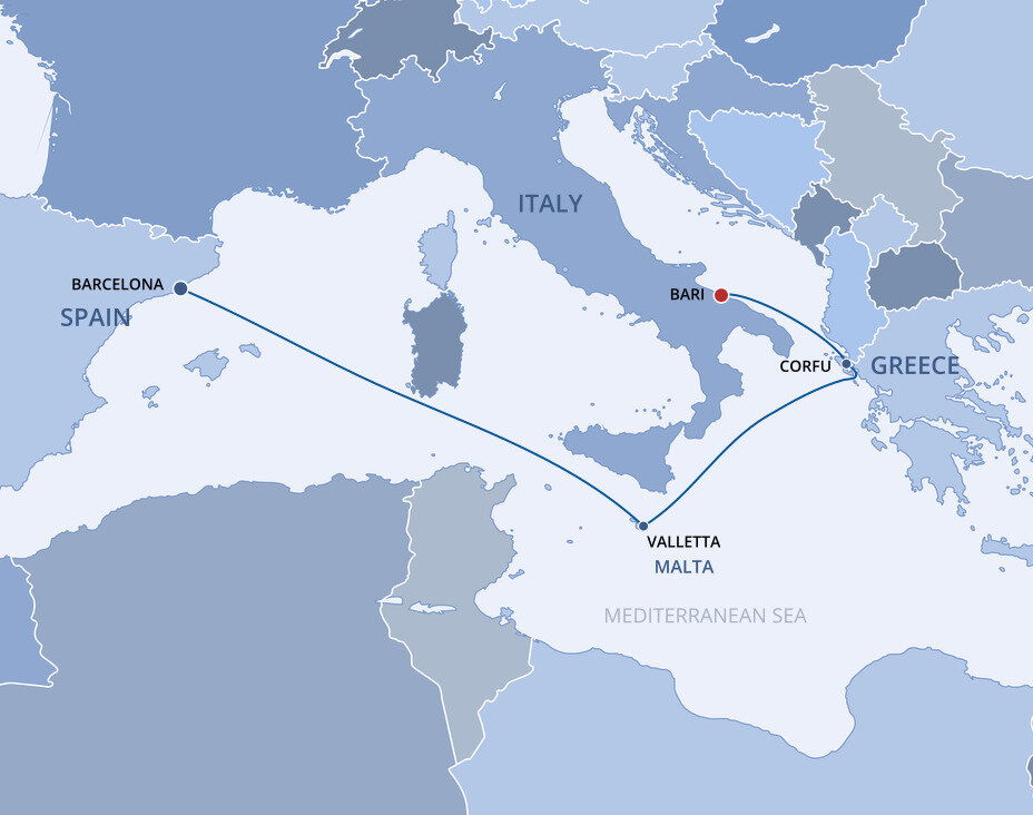 Perched on the Adriatic Sea, the city of Bari has long served as an important port city for both ancient and modern Italy. The city's Old Town beckons visitors to explore with its medieval churches, pedestrian-friendly plazas, and its labyrinth of crooked streets and passageways. Ships will dock at the Port of Bari.