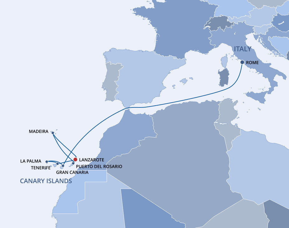 ‘La Isla Bonita,’ La Palma is one of the smaller of the Canary Islands. Its capital, Santa Cruz de la Palma, is a beautiful colonial-style city set on a picturesque harbour. The island’s landscape is one of black sand beaches, mountainous terrain and rich plant life. Ships will dock at the port of Santa Cruz de la Palma.