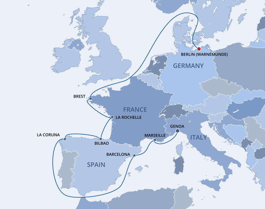 A lively port in France’s Brittany region, Brest originally dates back to the middle ages. After being heavily bombed during World War II, the city was rebuilt with an eye towards the future. Nestled in one of France’s most picturesque natural harbours, Brest’s history has always been closely aligned with the sea. Ships will dock at the Port of Brest.