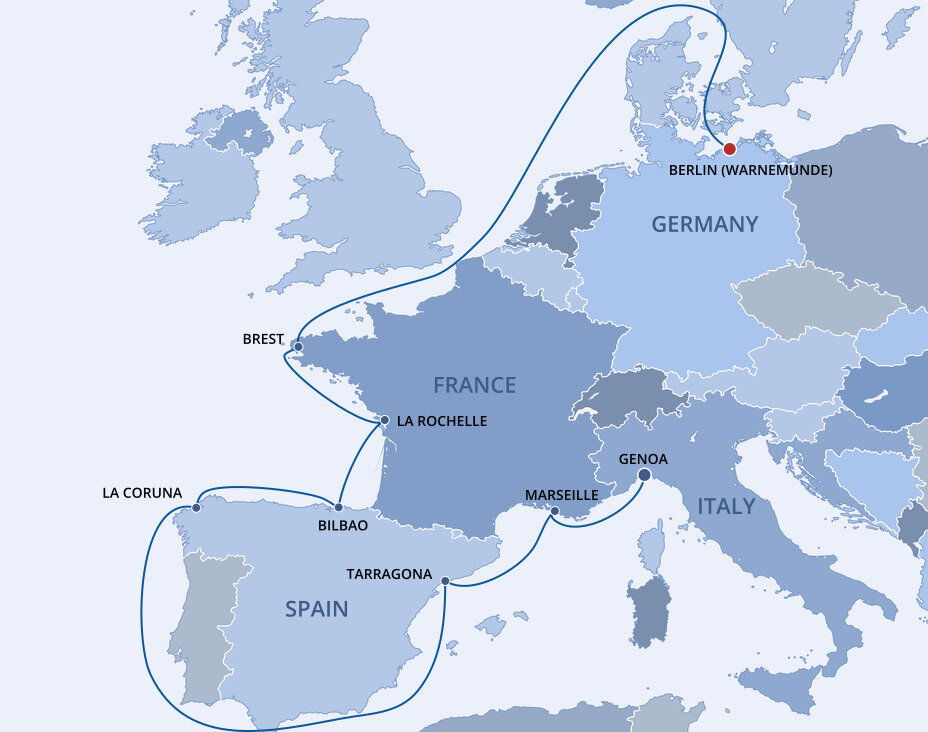 A lively port in France’s Brittany region, Brest originally dates back to the middle ages. After being heavily bombed during World War II, the city was rebuilt with an eye towards the future. Nestled in one of France’s most picturesque natural harbours, Brest’s history has always been closely aligned with the sea. Ships will dock at the Port of Brest.