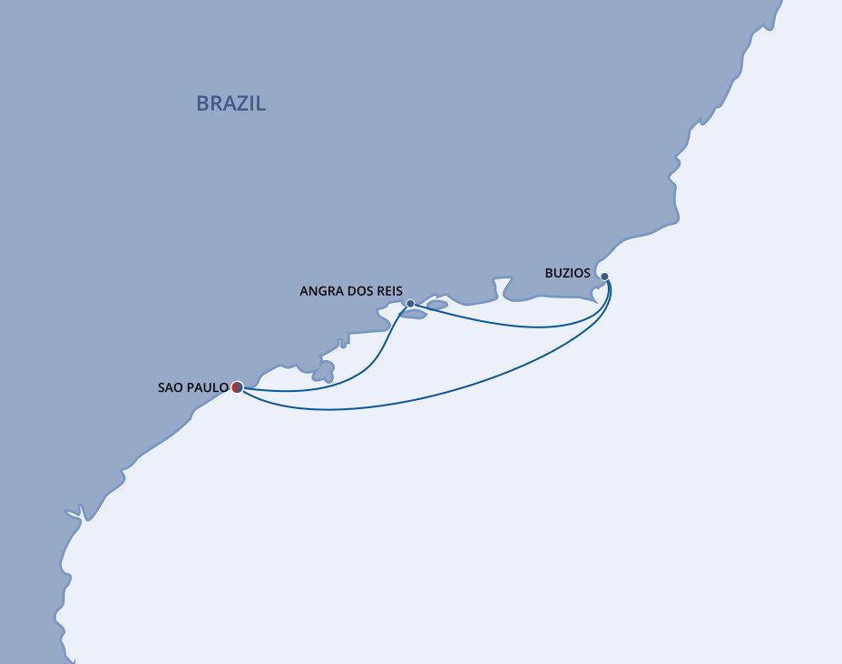 Upscale and desirable, Buzios is a beachy escape to a land of sun and thick palm-clad hills. With 17 luxurious, horseshoe-shaped beaches spreading out nearby, and a lively nightlife and culinary scene, Buzios is a place to kick back and soak up some of the best of Brazil's envied beach life. Ships will anchor offshore and tender guests to shore.