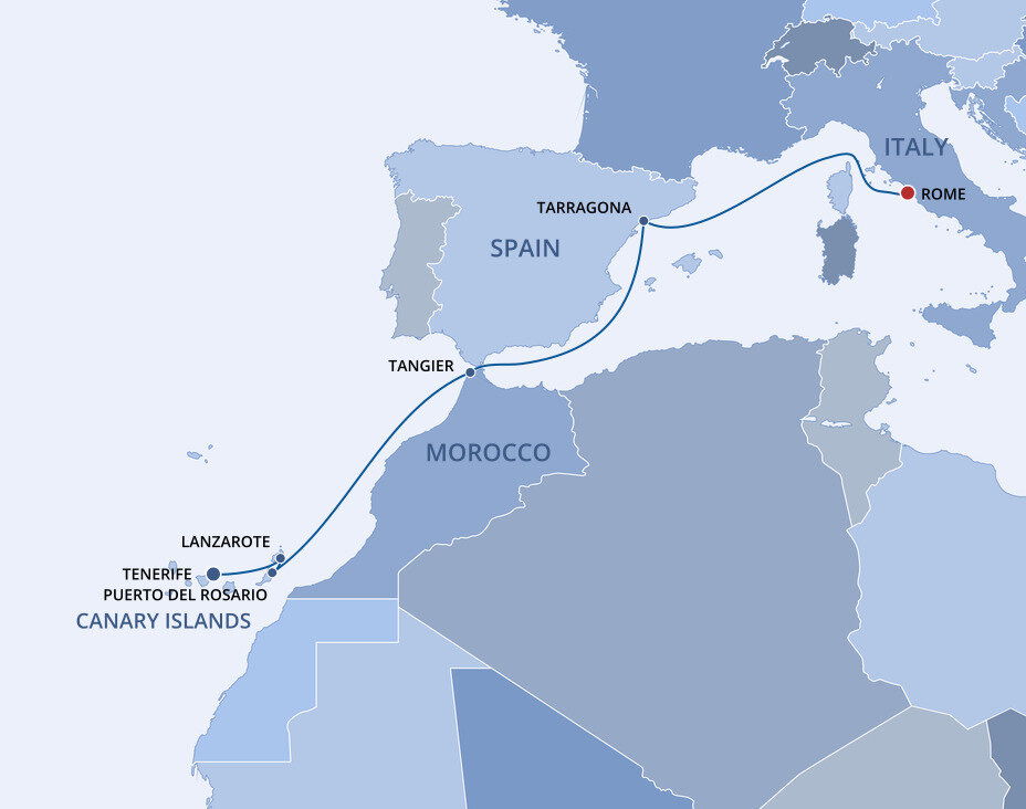 Situated just across the narrow Strait of Gibraltar from Europe, Tangier has long comprised a hybrid culture that is nearly as European as it is African. Punctuated by blooming flowers, the entire town is a beautiful, moulded artwork of colour, spilling down the mountain like a waterfall. Ships will dock in Port de Tanger Ville.
