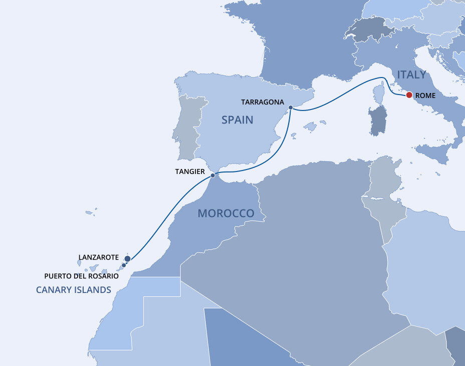 Situated just across the narrow Strait of Gibraltar from Europe, Tangier has long comprised a hybrid culture that is nearly as European as it is African. Punctuated by blooming flowers, the entire town is a beautiful, moulded artwork of colour, spilling down the mountain like a waterfall. Ships will dock in Port de Tanger Ville.