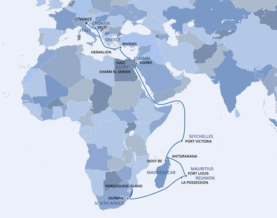 Enjoy the breathtaking illusion of sailing through oceans of desert sand as you cruise the Suez Canal, the engineering marvel that connects the Mediterranean and Red Seas.