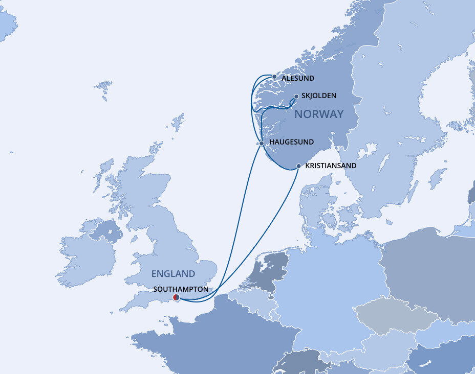 Set on the shores of a sparkling fjord, cosmopolitan Kristiansand is the largest city in Southern Norway. It has a cultural and tranquil atmosphere, a blend of contemporary and traditional architecture, and a natural beauty woven throughout and beyond the city. Ships will dock at the cruise terminal.