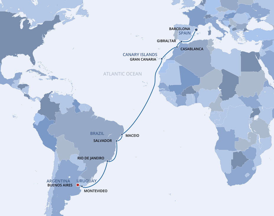 The oldest and most historic city in Brazil is renowned for its deeply rooted Afro-Brazilian culture. Its colourful centre is full of colonial architecture and an amazing number of magnificent baroque churches, giving Salvador the nickname 'Black Rome.' Ships will dock at the cruise terminal.