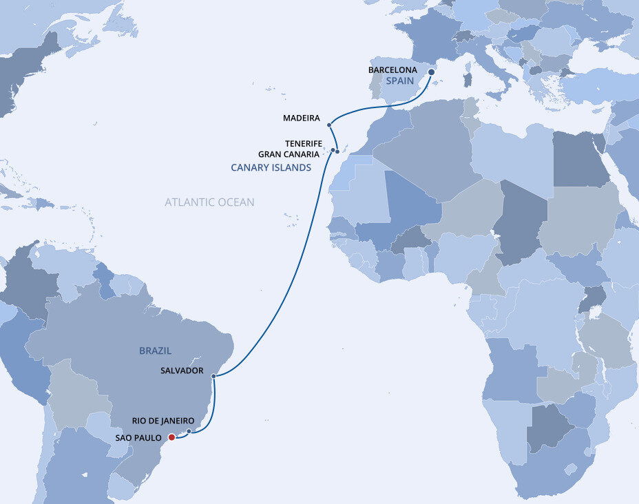 The oldest and most historic city in Brazil is renowned for its deeply rooted Afro-Brazilian culture. Its colourful centre is full of colonial architecture and an amazing number of magnificent baroque churches, giving Salvador the nickname 'Black Rome.' Ships will dock at the cruise terminal.