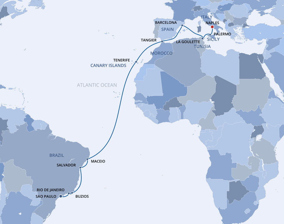 In Rio De Janeiro endless buildings flow around densely-forested mountains that roll down to an evocative waterfront. Incredible natural attractions, spontaneity that transforms everything into a party and world-famous monuments all make this city an unforgettable destination. Ships will dock at Pier Maua.