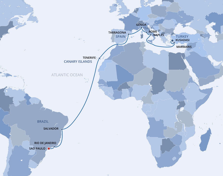 In Rio De Janeiro endless buildings flow around densely-forested mountains that roll down to an evocative waterfront. Incredible natural attractions, spontaneity that transforms everything into a party and world-famous monuments all make this city an unforgettable destination. Ships will dock at Pier Maua.