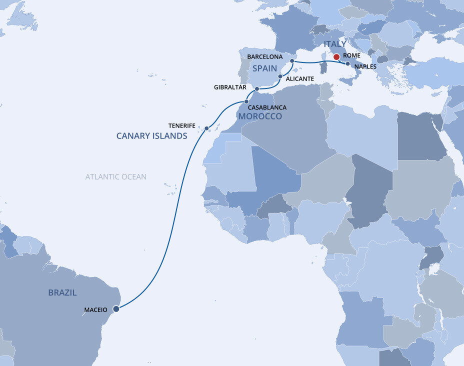 Serving as Rome’s seaport since the 13th century, Civitavecchia is located about an hour (80km/50mi) from the centre of Rome. For guests arriving and departing from the airport in Rome, a transfer to Civitavecchia port should be organised ahead of time with your cruise line. Details will be provided in your travel documentation after booking. The port area itself offers diverse dining options, and inside, facilities include accessible bathrooms, Wi-Fi, and a spacious waiting area. The port also offers complimentary shuttle buses to transfer guests between the ship and the port terminal.