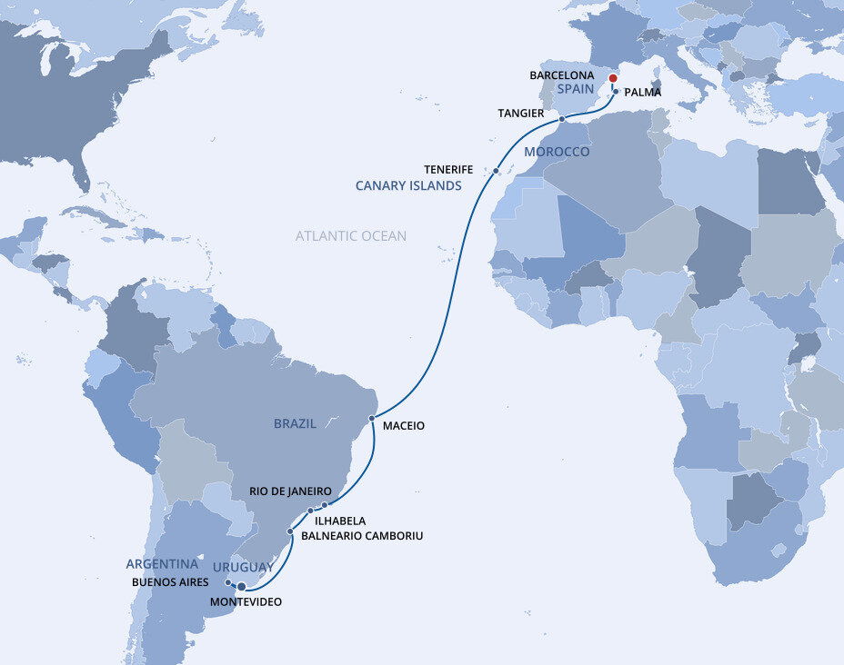 In Rio De Janeiro endless buildings flow around densely-forested mountains that roll down to an evocative waterfront. Incredible natural attractions, spontaneity that transforms everything into a party and world-famous monuments all make this city an unforgettable destination. Ships will dock at Pier Maua.