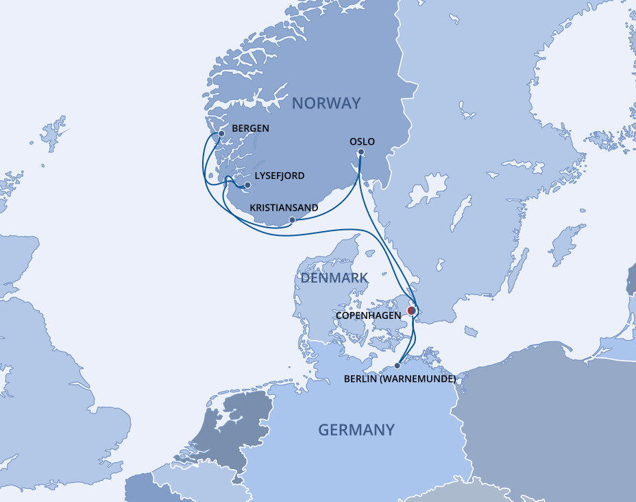 Set on the shores of a sparkling fjord, cosmopolitan Kristiansand is the largest city in Southern Norway. It has a cultural and tranquil atmosphere, a blend of contemporary and traditional architecture, and a natural beauty woven throughout and beyond the city. Ships will dock at the cruise terminal.