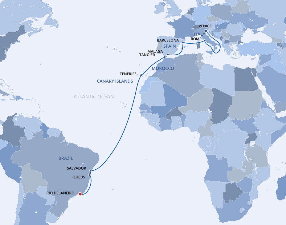 In Rio De Janeiro endless buildings flow around densely-forested mountains that roll down to an evocative waterfront. Incredible natural attractions, spontaneity that transforms everything into a party and world-famous monuments all make this city an unforgettable destination. Ships will dock at Pier Maua.