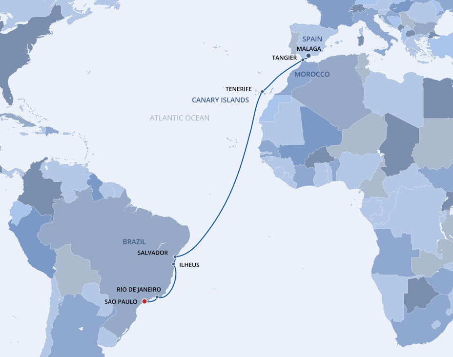 The oldest and most historic city in Brazil is renowned for its deeply rooted Afro-Brazilian culture. Its colourful centre is full of colonial architecture and an amazing number of magnificent baroque churches, giving Salvador the nickname 'Black Rome.' Ships will dock at the cruise terminal.