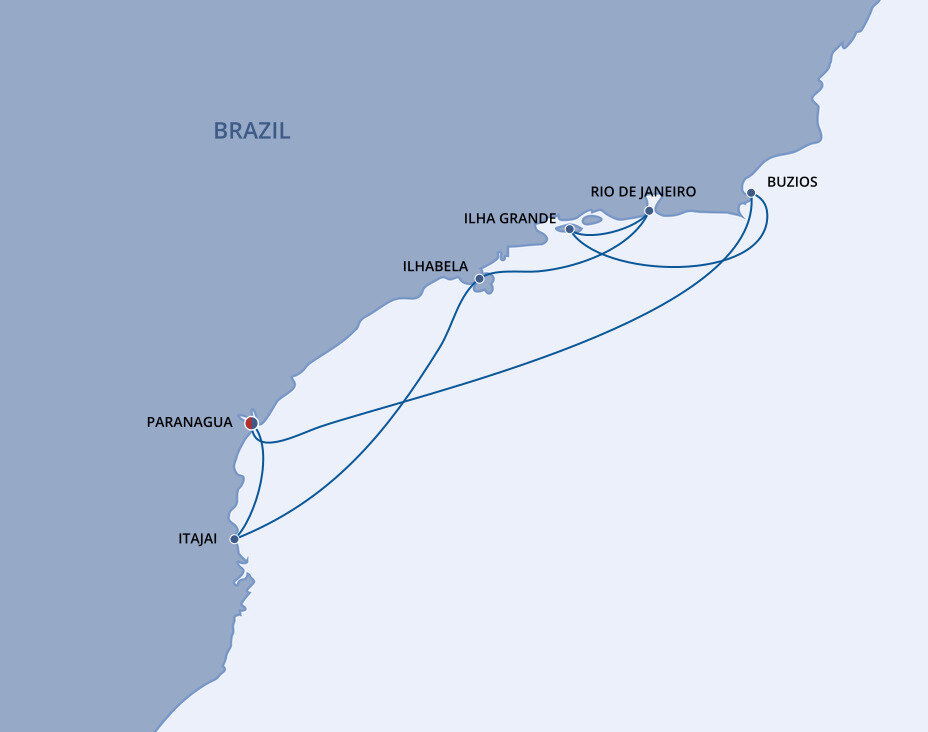 Upscale and desirable, Buzios is a beachy escape to a land of sun and thick palm-clad hills. With 17 luxurious, horseshoe-shaped beaches spreading out nearby, and a lively nightlife and culinary scene, Buzios is a place to kick back and soak up some of the best of Brazil's envied beach life. Ships will anchor offshore and tender guests to shore.