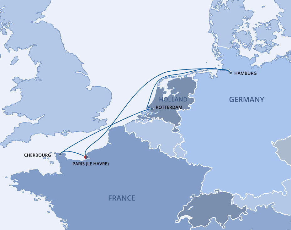 Cherbourg is a thriving port steeped in seafaring history. It has a busy, cheerful and international atmosphere, with easily navigable streets dotted with inviting restaurants and charming cafés. Beyond the port, the region of Normandy brims with scenery and history in every direction. Ships will dock at either Quai de Normandie or Quai de France.