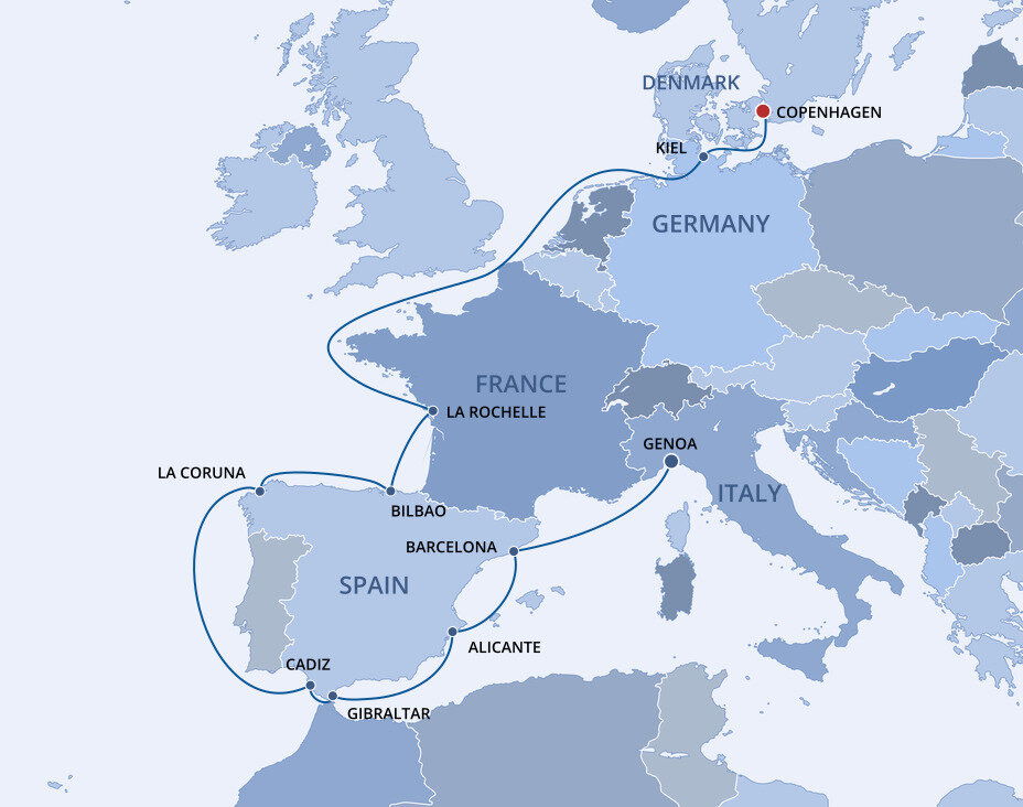 The iconic Little Mermaid statue sits serenely by the waterfront, while Tivoli Gardens, one of the world’s oldest amusement parks, offers charming rides and lush gardens in the heart of the city. Your ship will dock at the Port of Copenhagen, which is a 30 minute drive to Copenhagen Airport and a 15 minute drive into the city centre.