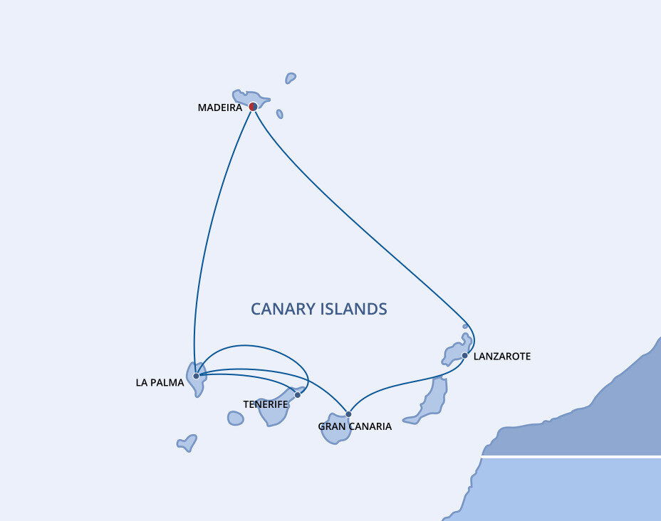 ‘La Isla Bonita,’ La Palma is one of the smaller of the Canary Islands. Its capital, Santa Cruz de la Palma, is a beautiful colonial-style city set on a picturesque harbour. The island’s landscape is one of black sand beaches, mountainous terrain and rich plant life. Ships will dock at the port of Santa Cruz de la Palma.