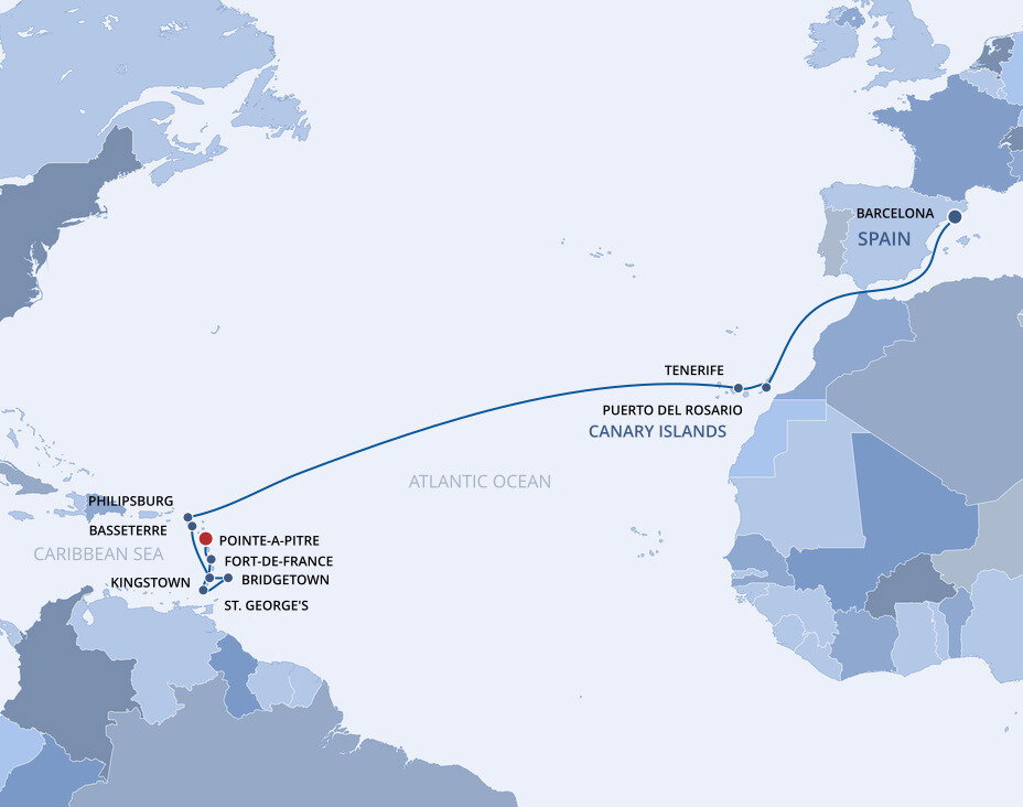 Bridgetown, the captivating capital of Barbados, combines faded colonial history, captivating tradition, and vivid white beaches. Stately colonial buildings intermingle with colourful wooden homes, open-air markets and catch-of-the-day cafés. Ships will dock at this port.
