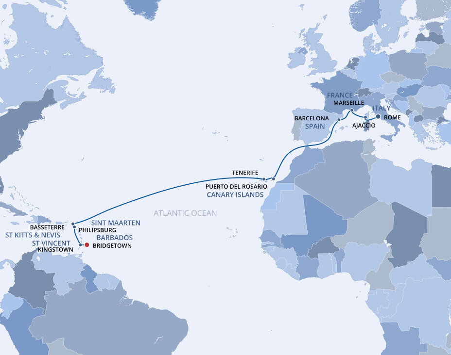 Bridgetown, the captivating capital of Barbados, combines faded colonial history, captivating tradition, and vivid white beaches. Stately colonial buildings intermingle with colourful wooden homes, open-air markets and catch-of-the-day cafés. Ships will dock at this port.