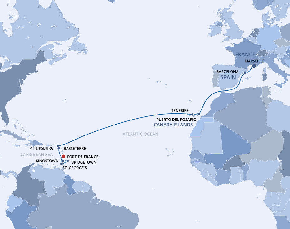 Fort-de-France, located on Martinique is the largest city in the French West Indies and it has personality to match. Life here is vibrant and fast-paced, and the culture is as colourful as the brightly painted shops that line the city’s cobblestone streets. Ships will dock at the port.