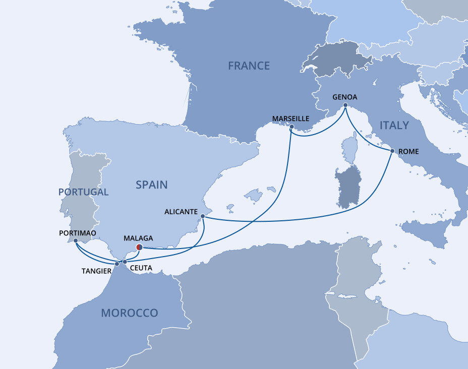 Málaga is the lively capital of the Costa del Sol, famed for its beaches and mild climate. It is a city of narrow streets, whitewashed houses, churches and sunny plazas. Málaga also serves as a popular starting point for excursions to splendid Granada and the famed Alhambra. Ships will dock at the Málaga cruise terminal.