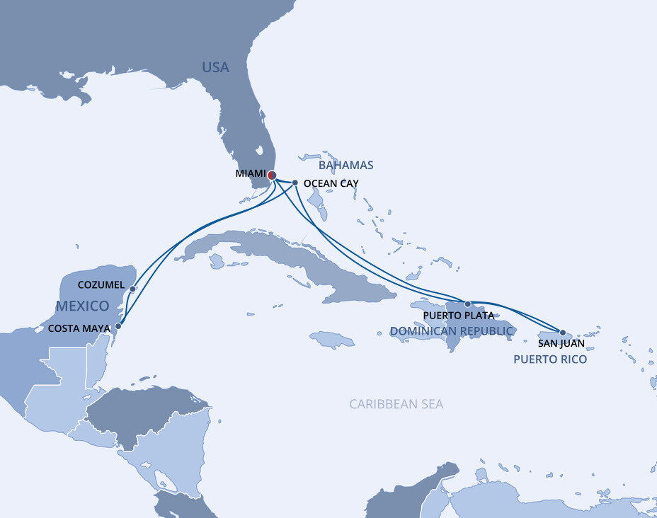 This multicultural city where the sun rules supreme is more than just a cruise port. Visitors from all over the world enjoy Miami’s famous Art Deco buildings, family-friendly zoos and romantic palm tree-lined streets filled with fantastic restaurants. Don’t forget about the white sandy beaches and year-round warm weather, perfect for relaxing before or after your Caribbean cruise from Miami.