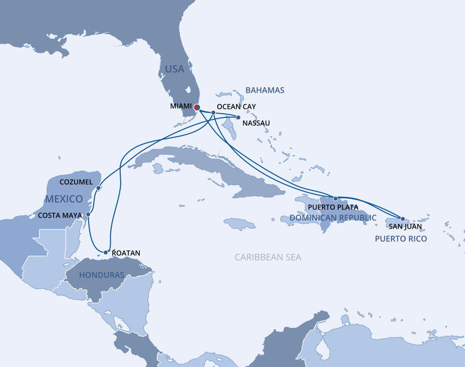 This multicultural city where the sun rules supreme is more than just a cruise port. Visitors from all over the world enjoy Miami’s famous Art Deco buildings, family-friendly zoos and romantic palm tree-lined streets filled with fantastic restaurants. Don’t forget about the white sandy beaches and year-round warm weather, perfect for relaxing before or after your Caribbean cruise from Miami.