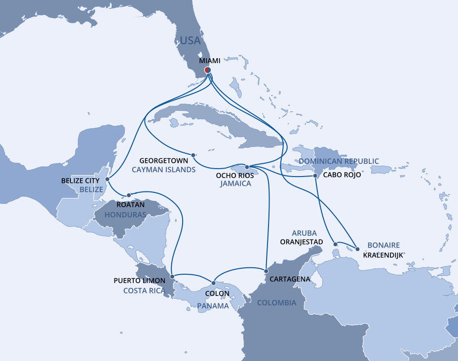 This multicultural city where the sun rules supreme is more than just a cruise port. Visitors from all over the world enjoy Miami’s famous Art Deco buildings, family-friendly zoos and romantic palm tree-lined streets filled with fantastic restaurants. Don’t forget about the white sandy beaches and year-round warm weather, perfect for relaxing before or after your Caribbean cruise from Miami.