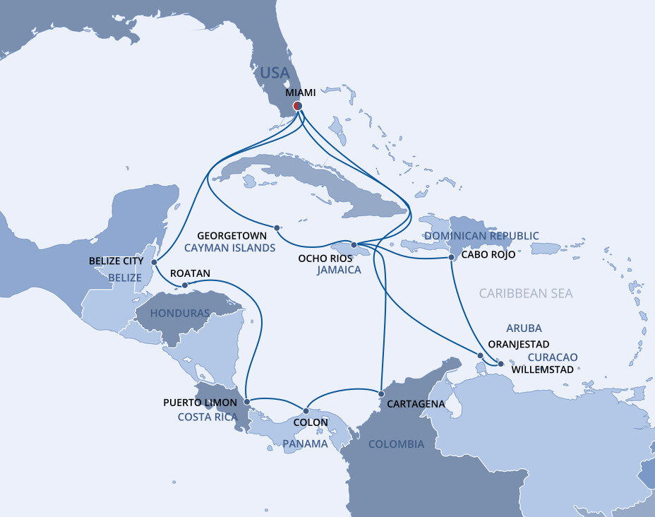This multicultural city where the sun rules supreme is more than just a cruise port. Visitors from all over the world enjoy Miami’s famous Art Deco buildings, family-friendly zoos and romantic palm tree-lined streets filled with fantastic restaurants. Don’t forget about the white sandy beaches and year-round warm weather, perfect for relaxing before or after your Caribbean cruise from Miami.