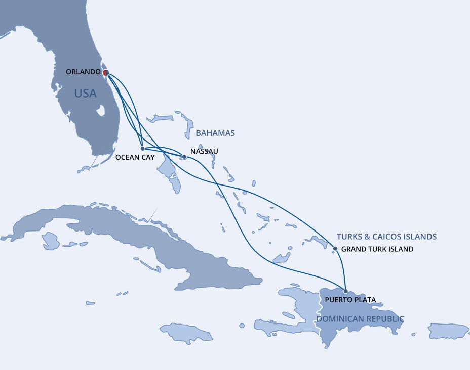 The high-energy capital of the Bahama's, Nassau, is filled with charming colonial-style buildings and pastel-coloured wooden shops that alternate with Georgian-style structures. To the north lies Paradise Island, developed almost exclusively to delight and accommodate visitors. Ships will dock at Prince George Wharf.