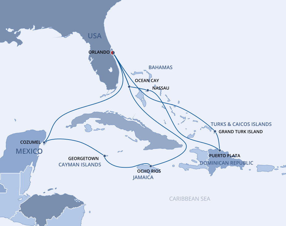 As the home of Kennedy Space Centre, Port Canaveral is the launching point for all-out adventure in Central Florida. Its beaches offer a mix of family-friendly shores and secluded swathes of sand. And with Orlando’s theme park sprawl only an hour away, you can easily mingle with your favourite characters. A truly unique place for cruise departures and arrivals, it gives visitors the perfect opportunity to extend their holiday beyond the cruise. Ships will dock at the cruise terminal.