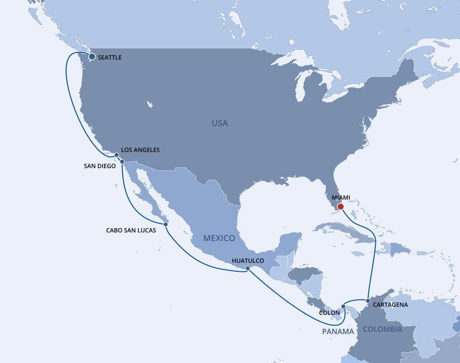 Cruise lines embark to destinations such as the Mexican Riviera, Hawaii, the California Coast and the Panama Canal.