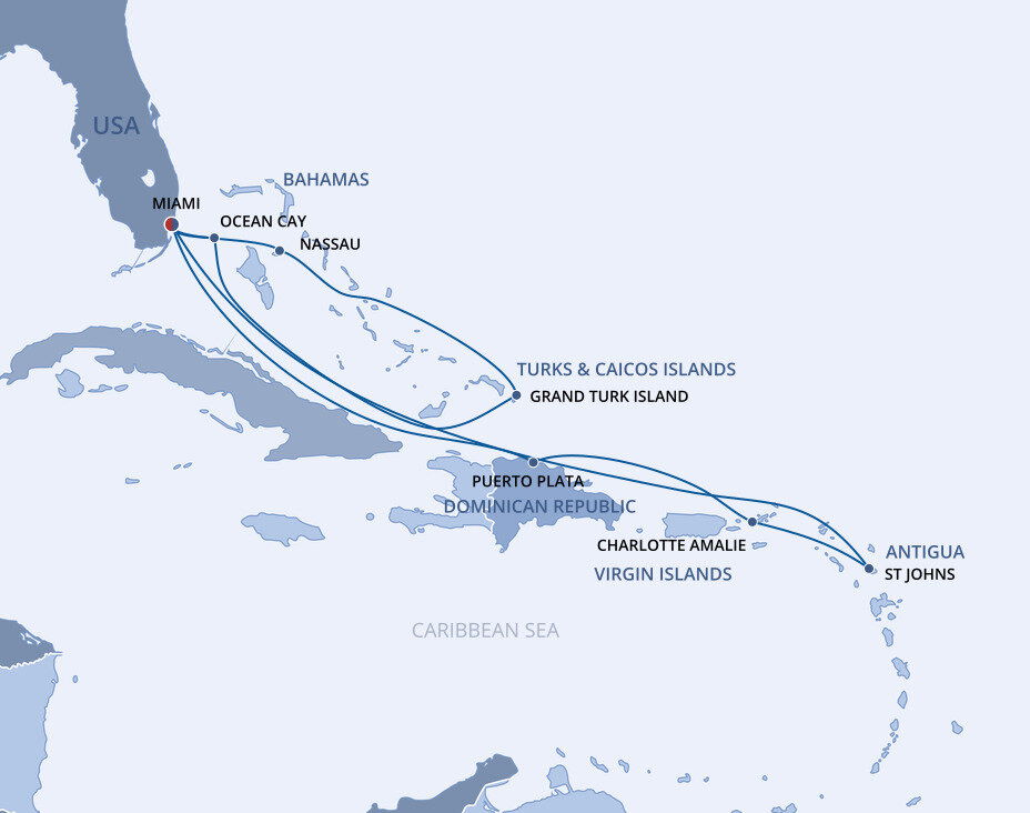 This multicultural city where the sun rules supreme is more than just a cruise port. Visitors from all over the world enjoy Miami’s famous Art Deco buildings, family-friendly zoos and romantic palm tree-lined streets filled with fantastic restaurants. Don’t forget about the white sandy beaches and year-round warm weather, perfect for relaxing before or after your Caribbean cruise from Miami.