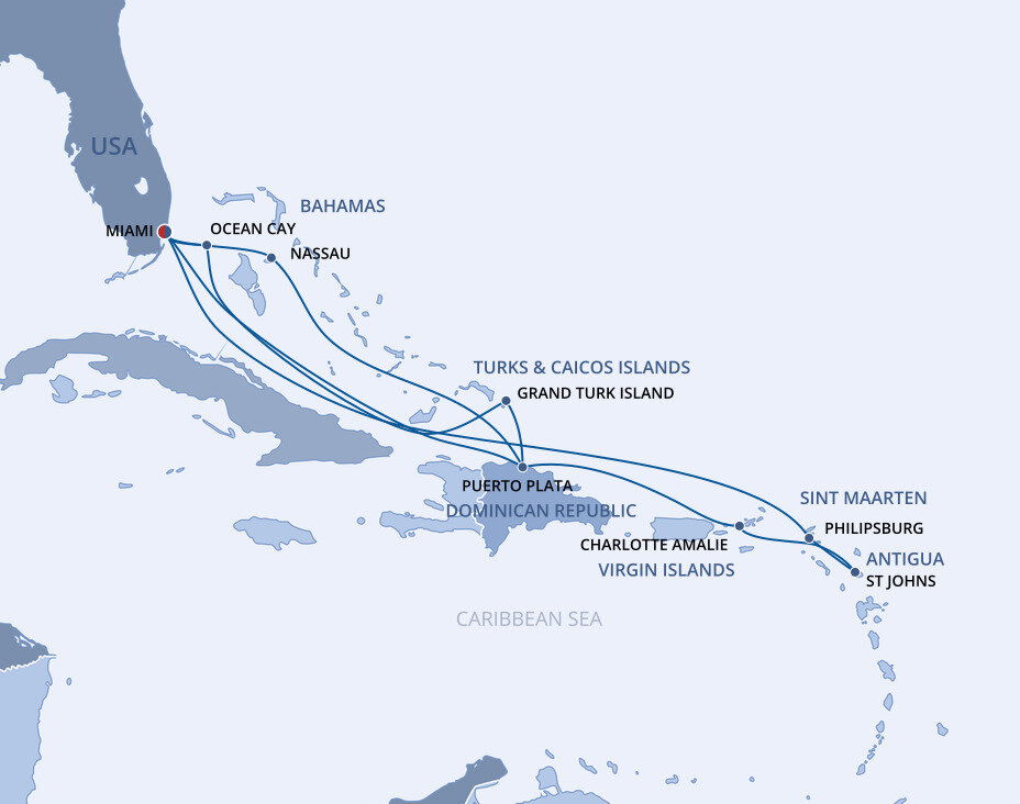 This multicultural city where the sun rules supreme is more than just a cruise port. Visitors from all over the world enjoy Miami’s famous Art Deco buildings, family-friendly zoos and romantic palm tree-lined streets filled with fantastic restaurants. Don’t forget about the white sandy beaches and year-round warm weather, perfect for relaxing before or after your Caribbean cruise from Miami.