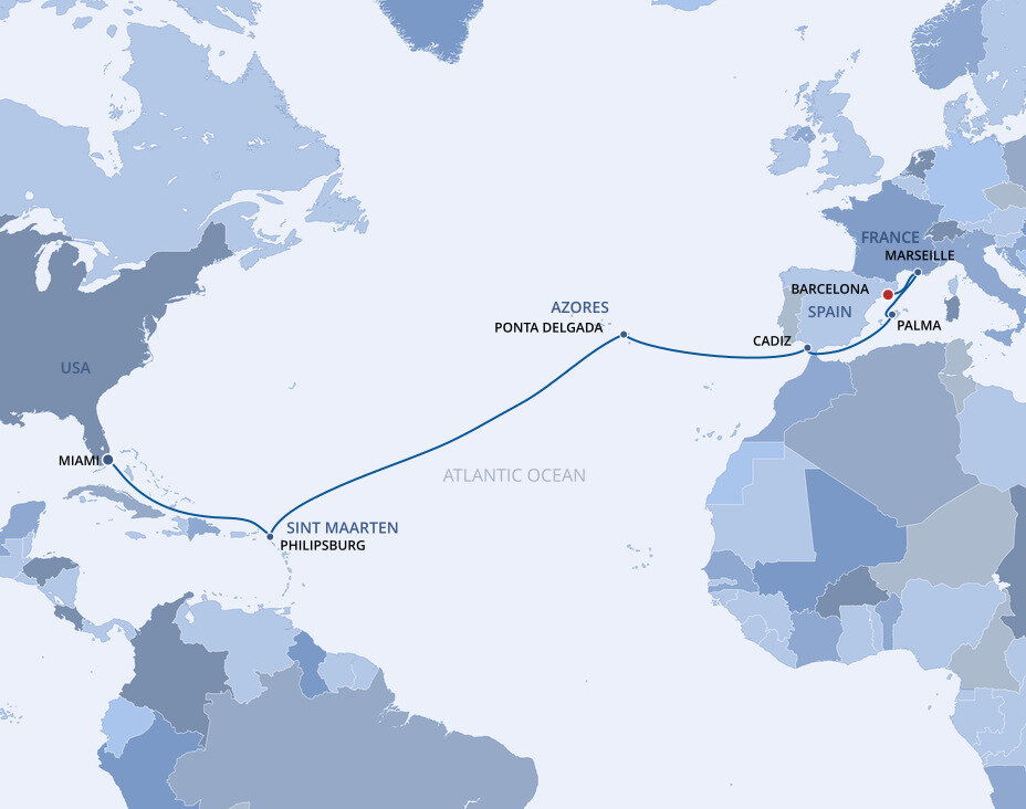 Your cruise finishes today in Barcelona, a captivating city on Spain's northeastern coast. If you're extending your stay in the city, start with a visit to La Sagrada Família, Antoni Gaudí's masterpiece, then wander through the narrow, historic streets of the Gothic Quarter.