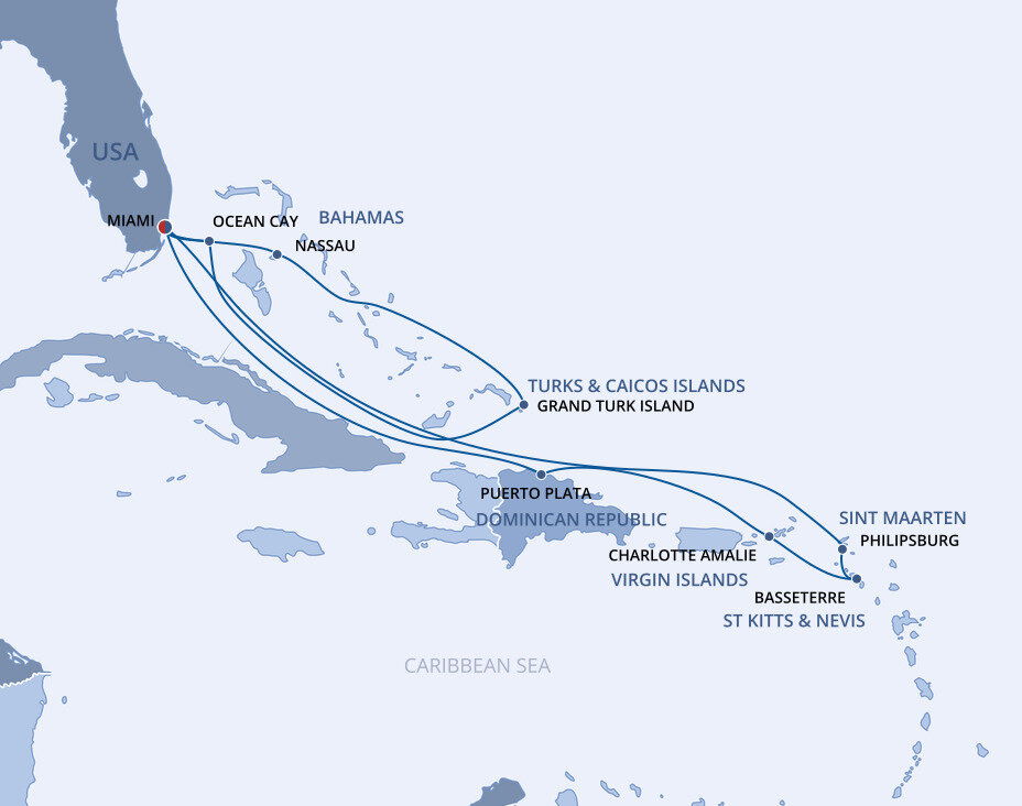 This multicultural city where the sun rules supreme is more than just a cruise port. Visitors from all over the world enjoy Miami’s famous Art Deco buildings, family-friendly zoos and romantic palm tree-lined streets filled with fantastic restaurants. Don’t forget about the white sandy beaches and year-round warm weather, perfect for relaxing before or after your Caribbean cruise from Miami.