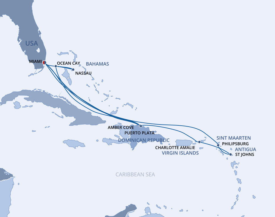 This multicultural city where the sun rules supreme is more than just a cruise port. Visitors from all over the world enjoy Miami’s famous Art Deco buildings, family-friendly zoos and romantic palm tree-lined streets filled with fantastic restaurants. Don’t forget about the white sandy beaches and year-round warm weather, perfect for relaxing before or after your Caribbean cruise from Miami.