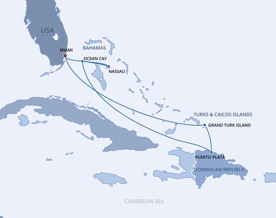 The high-energy capital of the Bahama's, Nassau, is filled with charming colonial-style buildings and pastel-coloured wooden shops that alternate with Georgian-style structures. To the north lies Paradise Island, developed almost exclusively to delight and accommodate visitors. Ships will dock at Prince George Wharf.