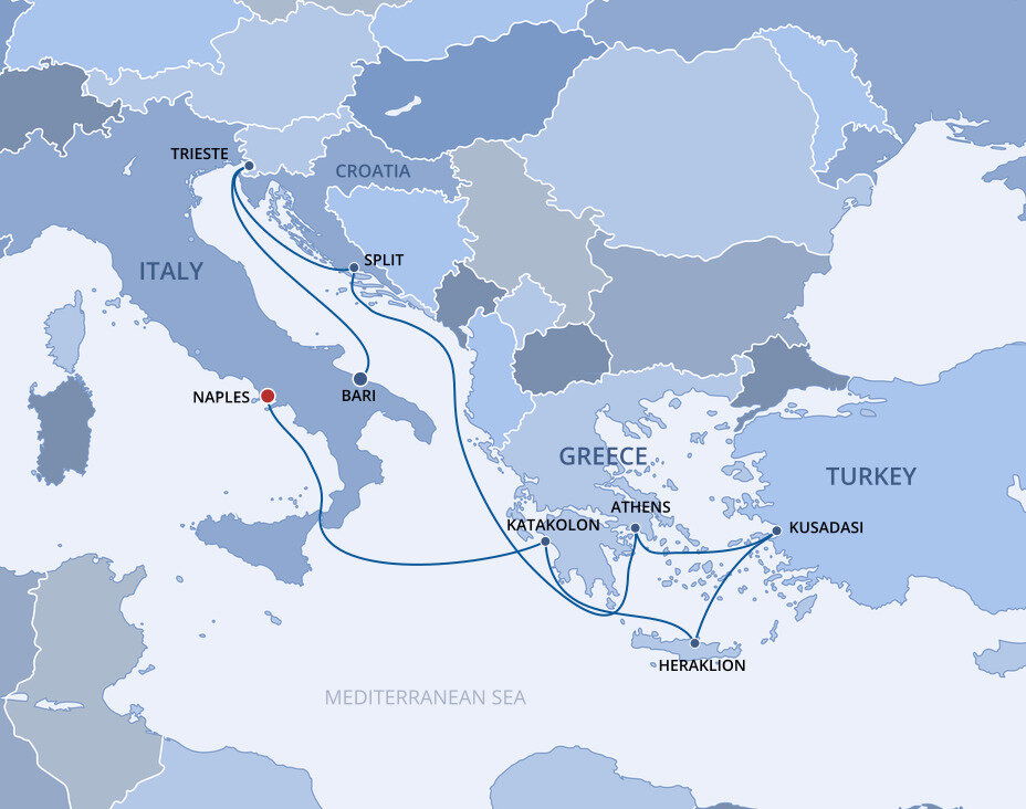 Perched on the Adriatic Sea, the city of Bari has long served as an important port city for both ancient and modern Italy. The city's Old Town beckons visitors to explore with its medieval churches, pedestrian-friendly plazas, and its labyrinth of crooked streets and passageways. Ships will dock at the Port of Bari.
