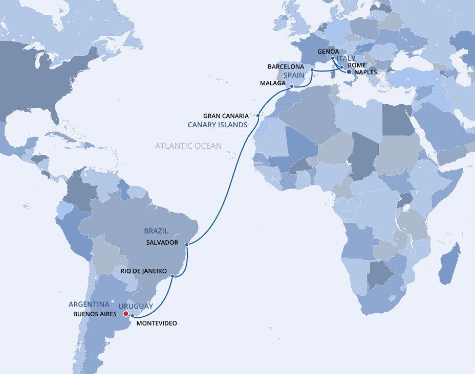 In Rio De Janeiro endless buildings flow around densely-forested mountains that roll down to an evocative waterfront. Incredible natural attractions, spontaneity that transforms everything into a party and world-famous monuments all make this city an unforgettable destination. Ships will dock at Pier Maua.