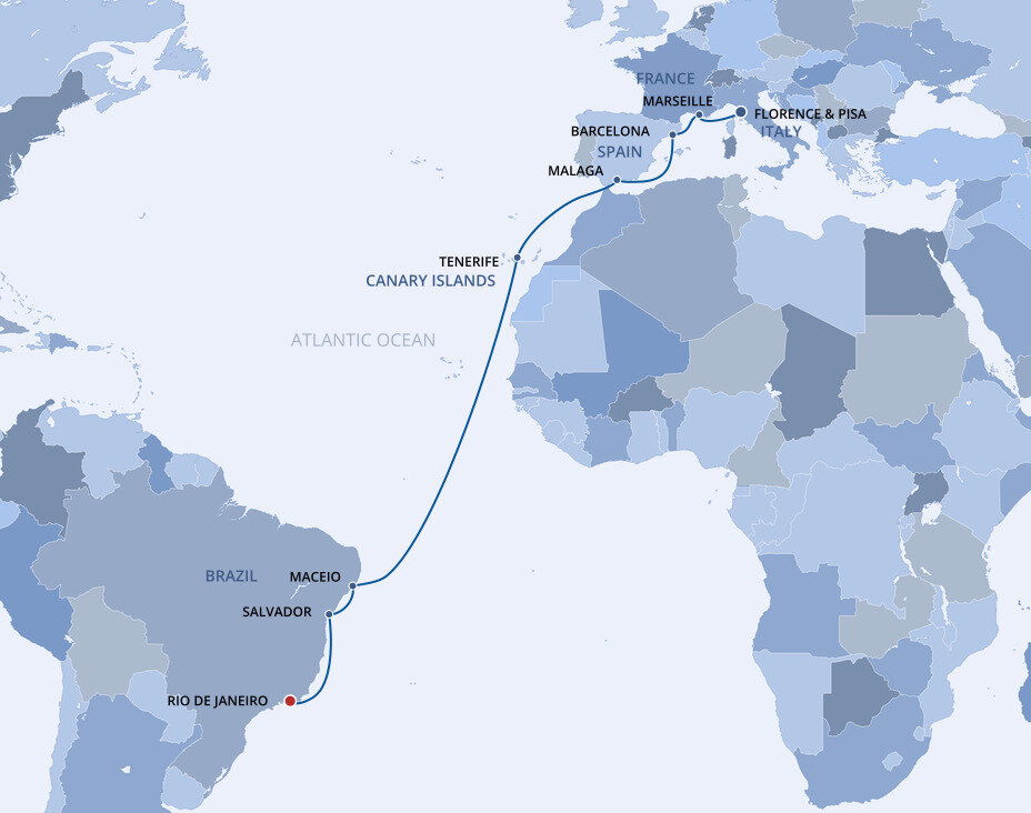 The oldest and most historic city in Brazil is renowned for its deeply rooted Afro-Brazilian culture. Its colourful centre is full of colonial architecture and an amazing number of magnificent baroque churches, giving Salvador the nickname 'Black Rome.' Ships will dock at the cruise terminal.