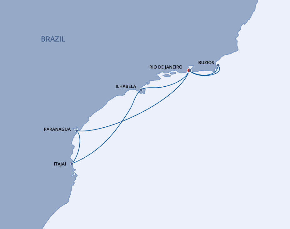 Upscale and desirable, Buzios is a beachy escape to a land of sun and thick palm-clad hills. With 17 luxurious, horseshoe-shaped beaches spreading out nearby, and a lively nightlife and culinary scene, Buzios is a place to kick back and soak up some of the best of Brazil's envied beach life. Ships will anchor offshore and tender guests to shore.