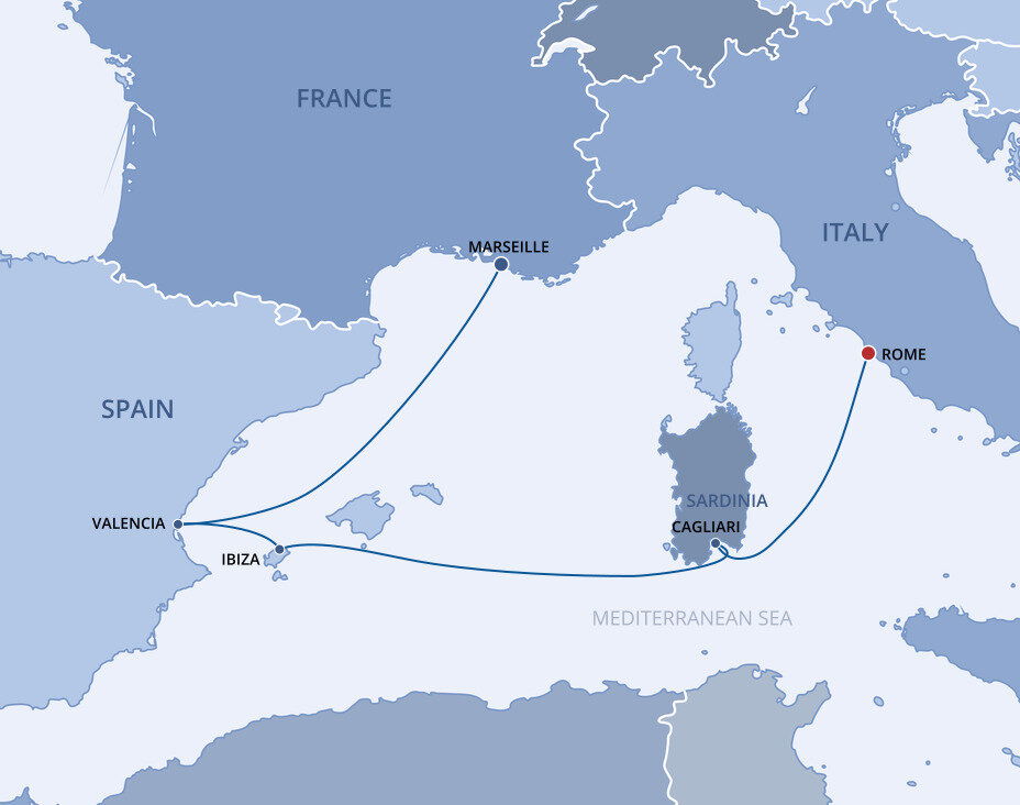 Cagliari, the capital of the island of Sardinia, is situated high upon hills that offer a panoramic view of the Golfo degli Angeli, the Gulf of Angels. Combining Byzantine churches with crumbling Roman ruins and Pisan towers, it’s an elegant, beguiling place to explore. Ships will dock at the Cagliari cruise port in Porto Cervo.