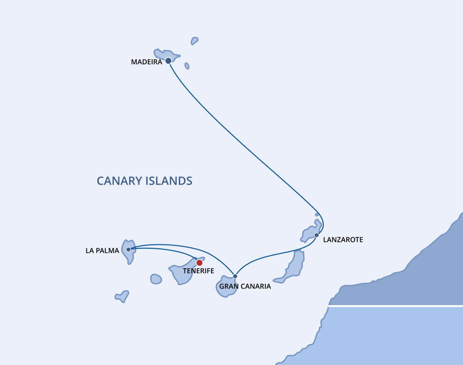 ‘La Isla Bonita,’ La Palma is one of the smaller of the Canary Islands. Its capital, Santa Cruz de la Palma, is a beautiful colonial-style city set on a picturesque harbour. The island’s landscape is one of black sand beaches, mountainous terrain and rich plant life. Ships will dock at the port of Santa Cruz de la Palma.