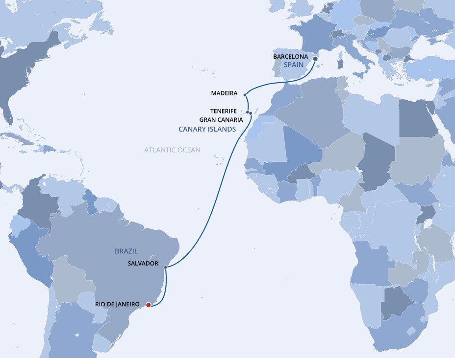 The oldest and most historic city in Brazil is renowned for its deeply rooted Afro-Brazilian culture. Its colourful centre is full of colonial architecture and an amazing number of magnificent baroque churches, giving Salvador the nickname 'Black Rome.' Ships will dock at the cruise terminal.